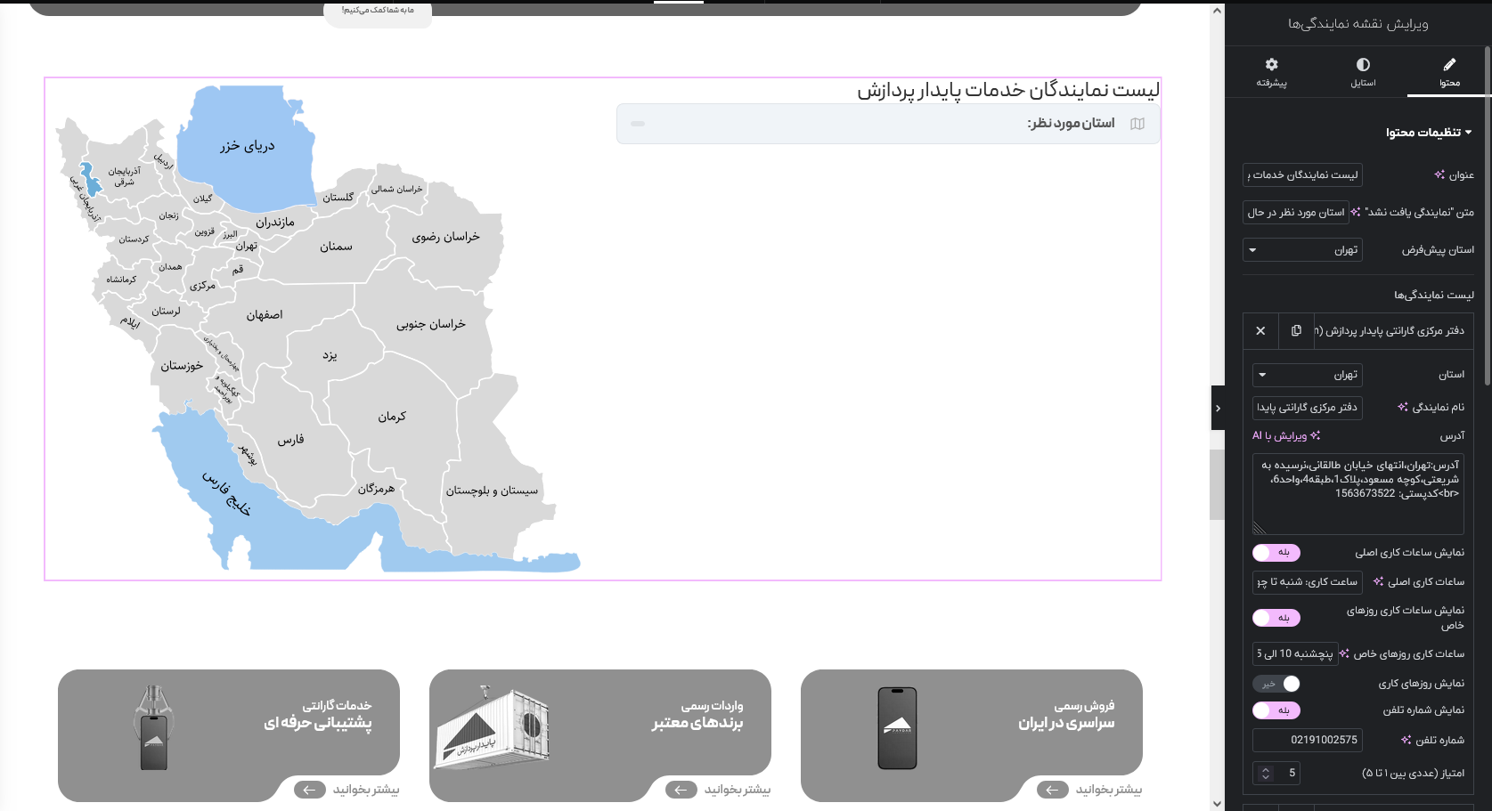 🗺️ویجت اختصاصی لیست نمایندگان روی نقشه
